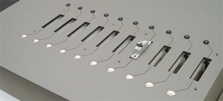 So verwenden wir diese Quellen auch für thermische Auslöseprüfstände oder Stundenprüfanlagen. Dabei werden mehrere Prüflinge gleichzeitig bestromt und bei Auslösung mittels Halbleitern überbrückt.